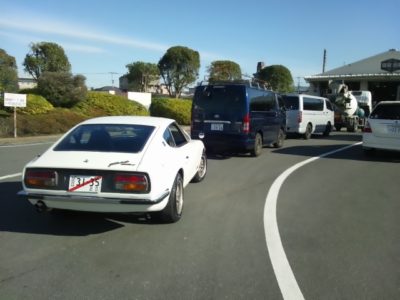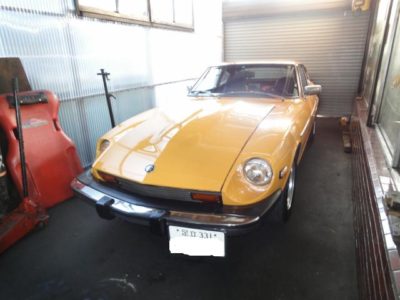 240Zと言うと、240ZGが多い感じですが、これはショートノーズの240Zです。 数は少ないですね。 仮ナンバーでの…