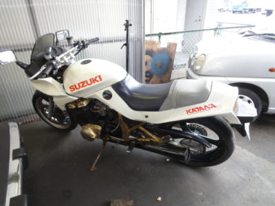 エンジン不動で修理依頼の車両です。 スズキ750KATANA、リトラクタブル式ヘッドライト!! この頃の年代は、4輪車も…