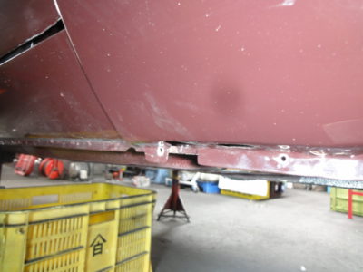 先日より、作業をしていました240ZGです。 車をジャッキアップをしまして、下にもぐっていた所、運転席側のフェンダーにち…