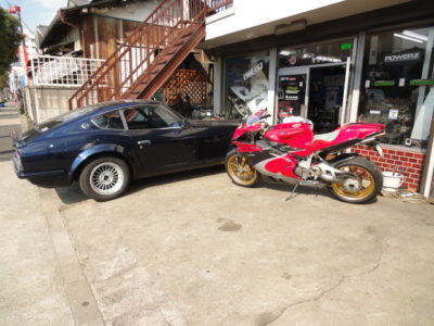 今日は全く違う年代の車種が並びました。 一番手前はお客さんのAS30Z。 真ん中はMV-AGUSTA F-4 Tambu…