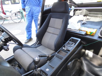 先日、お預かりした時に付いていましたレカロシートから日産純正レース用タイプの物に交換です。 運転席と助手席と両方の交換で…