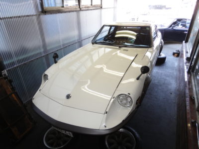 本日は240ZGの車検の準備です。 明日車検の予約が取れましたので本日中に各部点検しています。 タイヤも外して足回りの…